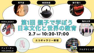 日本の伝統、多様性、世界の教育について一度に体験・学べる場が新宿に登場!親子で「見て」、「触れて」、「考えて」、交流できる1日を過ごそう秀平塗り事前予約はこちら南部鉄器事前予約はこちら獅子踊り体験事前予約はこちら展示/プログラム紹介エコギャ...